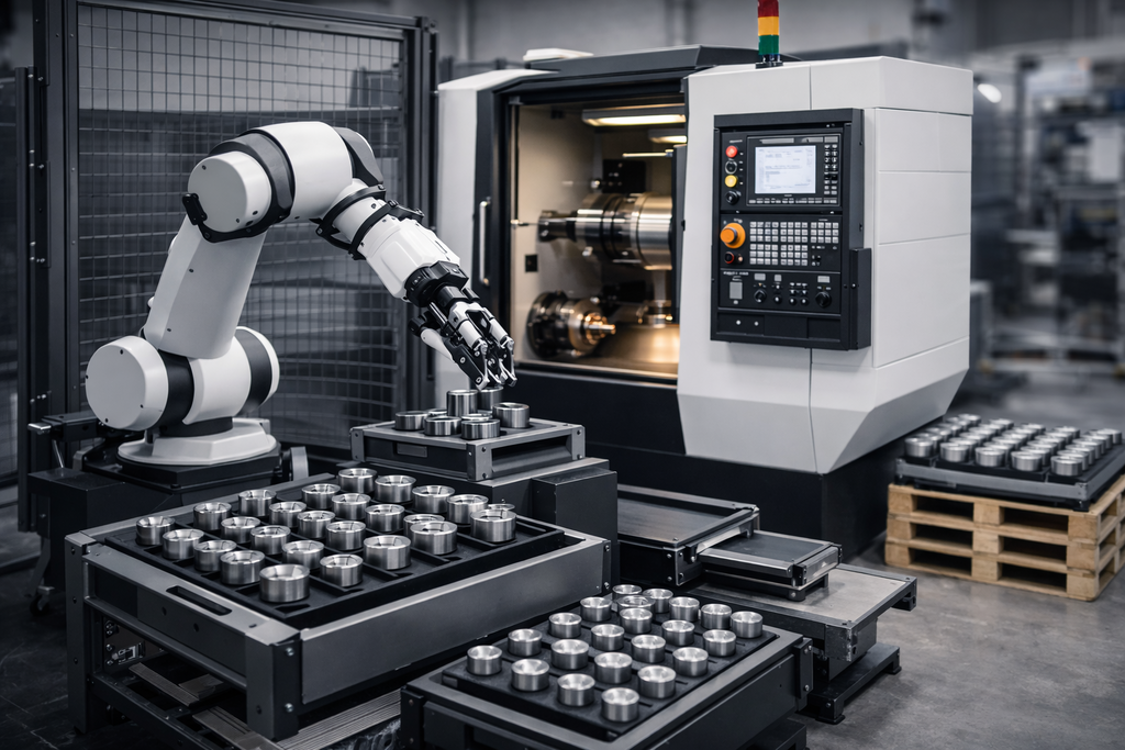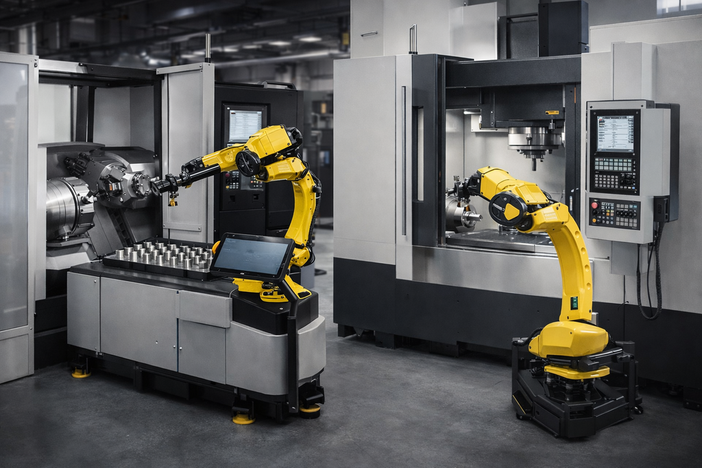 Решенија за автоматско опслужување на CNC машини, палетизација и ракување со работни парчиња, со цел зголемена продуктивност, повторливост и непрекинато производство.